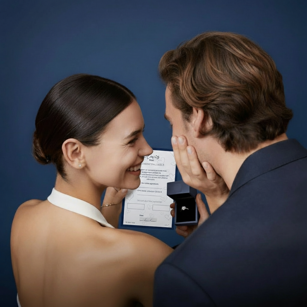 Nous avons donc imaginé la bague de promesse et son rituel : écrire deux prénoms et une date, signer, sceller à la cire, glisser la carte dans l’écrin. Ce geste transforme le bijou : de l’objet, il devient souvenir — une intention posée noir sur blanc.